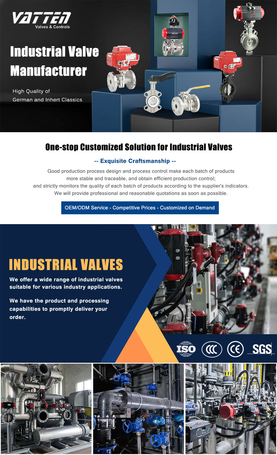 Vatten Valve Group, a globally renowned industrial automation valve enterprise originating from Saarland, Germany, specializes in the research, development, and manufacturing of core products such as automatic control ball valves, butterfly valves, and regulating valves. Leveraging our exceptional technological expertise, we deliver innovative valve solutions and professional technical support to critical industries including energy, chemical, water treatment, pharmaceutical, and food processing.