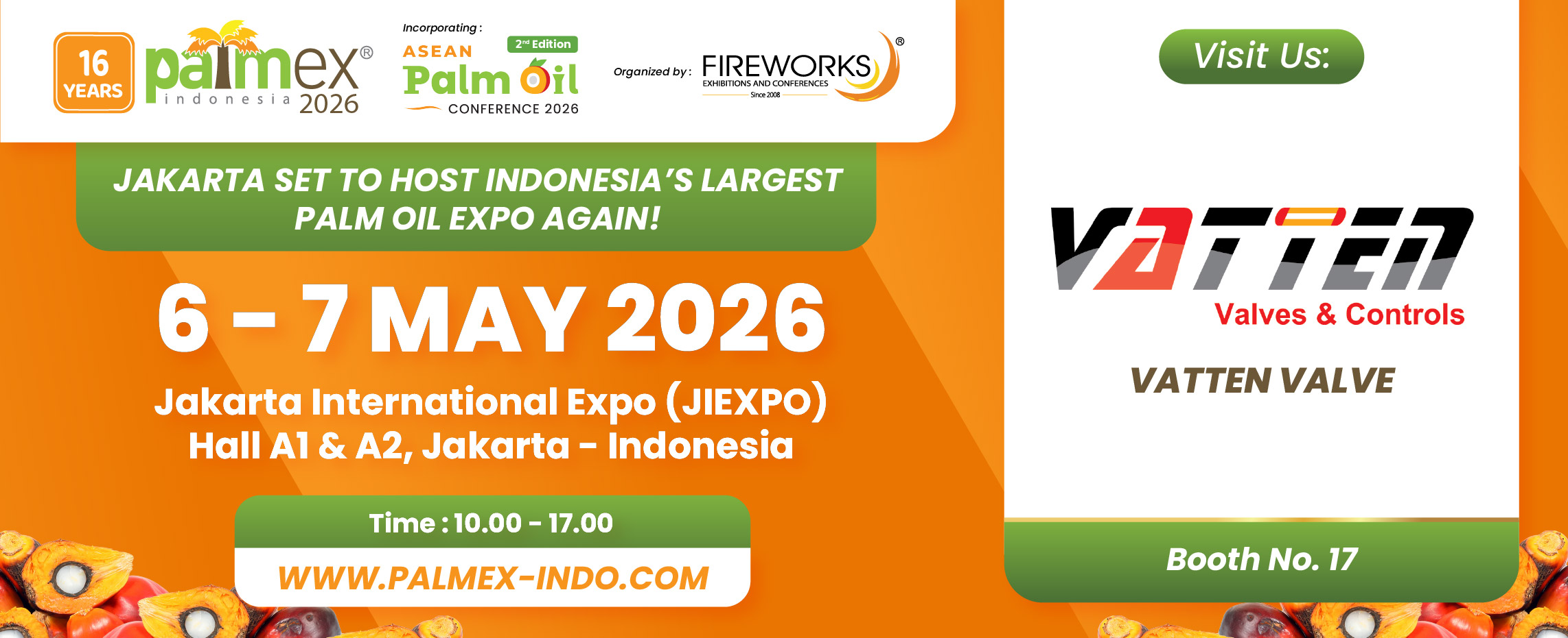 VATTEN Valves will showcase our core fluid control products and discuss new opportunities in the palm oil industry with you.