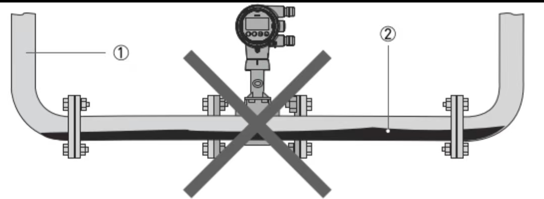 2.The flowmeter must be installed in a location that ensures the pipe is completely filled to achieve normal measurement.