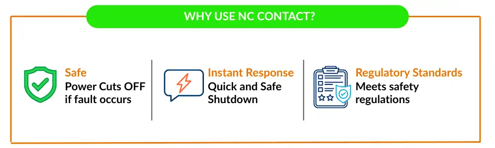 Once this logic is clearly understood, it becomes obvious why NC contacts are always preferred in safety circuits. It is not just a convention it is a fundamental safety philosophy.