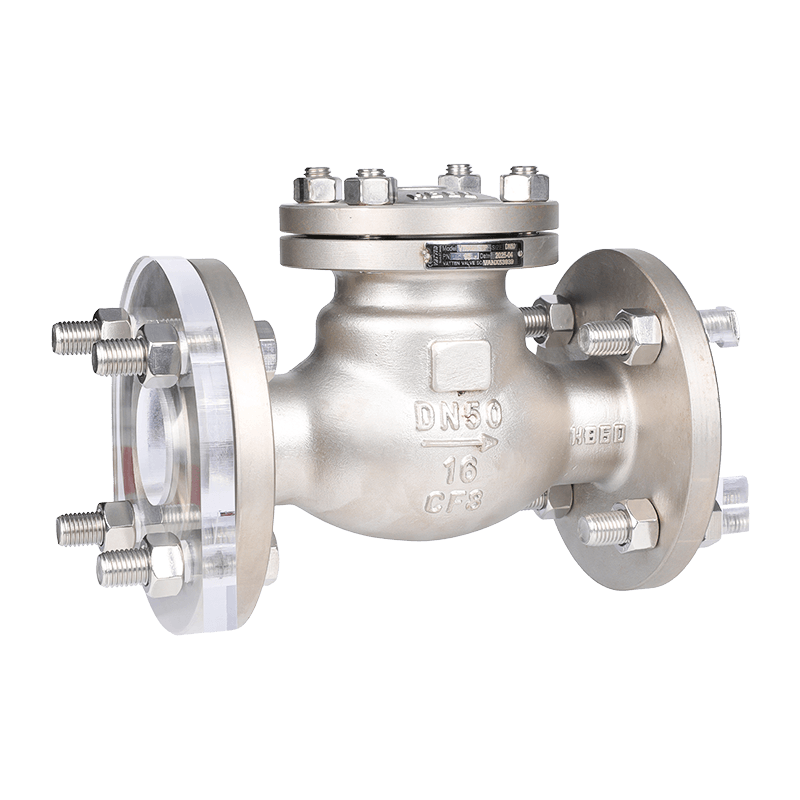 Typically, the H44H swing check valve operates automatically. When the medium flows in the intended direction, fluid pressure pushes the valve disc open, allowing the fluid to pass. When the fluid flows in the opposite direction, the pressure of the fluid and the self-weight of the valve disc act on the valve seat, sealing the valve and cutting off the flow path, thus preventing backflow.